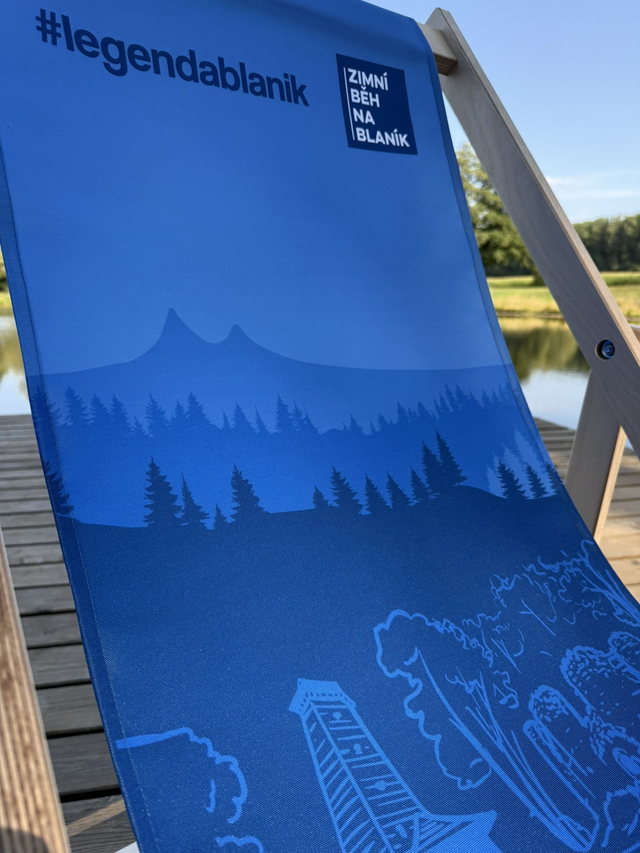 Dřevěné polohovací lehátko s designem Zimní běh na Blaník je lehátko poctivé české výroby s certifikovanou nosností 200 kg.